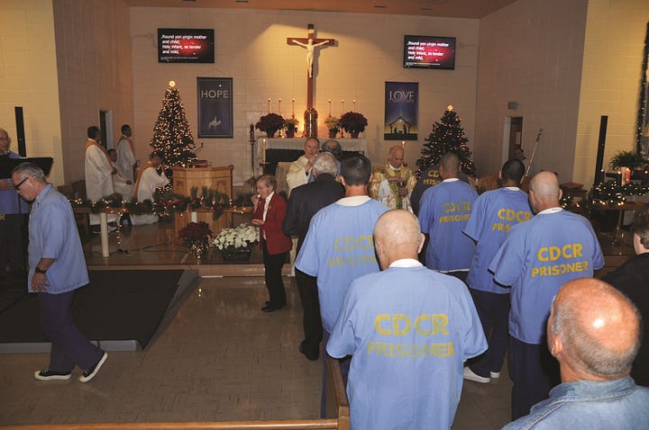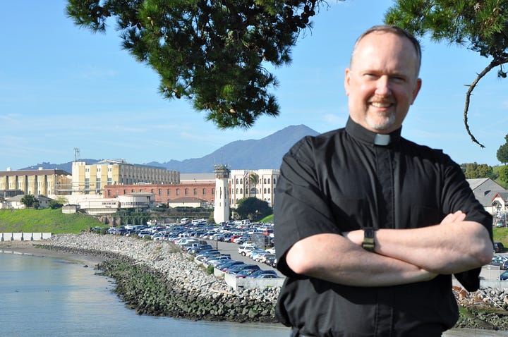 On April 3, 2016, I was invited by Jesuit priest the Rev. George Williams to attend the Roman Catholic mass over which he presided at Our Lady of the Rosary Catholic Church, the Catholic chapel at California’s San Quentin State Prison. While it is technically a no-no, Fr. George invited me to participate fully, including receiving Holy Communion. Fr. George, now retired from prison ministry, served as the Catholic chaplain at the notorious prison for a decade. Upon his departure from his call in 2021, he referred to his service at San Quentin as “the best and happiest years of my life.” An advocate for prisoners’ rights, abolition of capital punishment, and a program known as Restorative Justice, Fr. George has also been an ally to those suffering from mental illnesses, those on the margins of society, and the LGBTQ+ population. He was a voice of advocacy for protection for the transgender inmates serving time at San Quentin, and he is a champion of progressive theology and interdenominational dialogue. A friend of fellow Jesuit, the Rev. Jim Martin, some of their adventures together are described in detail in Fr. Jim’s book, Jesus: A Pilgrimage.